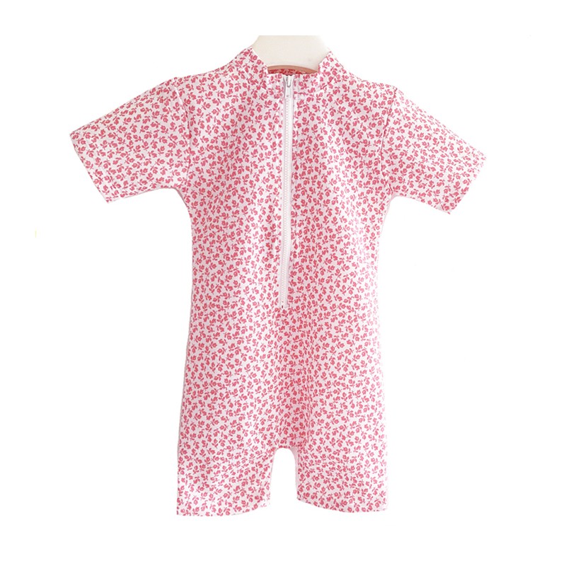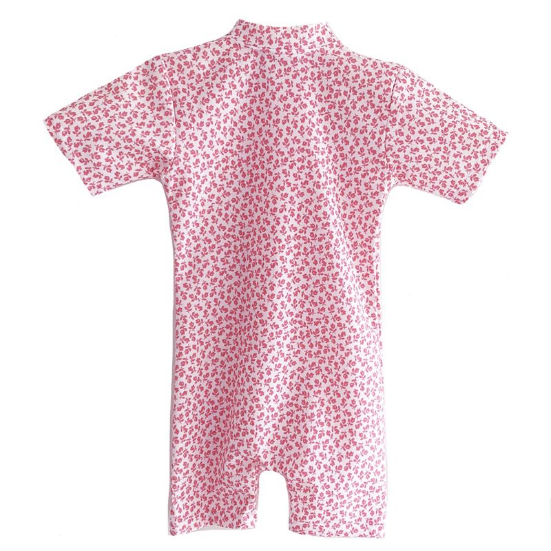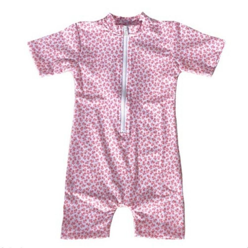 Super schöner UV Badeanzug Rose Flowers rosa mit kurzen Ärmeln und Beinen. Der Baby-Badeanzug ist sehr bequem und sitzt wie angegossen. Sobald sie es an haben, wollen sie es nicht mehr dehnen. Auf diese Weise haben Sie optimalen Schutz für Ihren Kleinen und er sieht auch super cool aus. Ideal für im Garten oder im Urlaub.