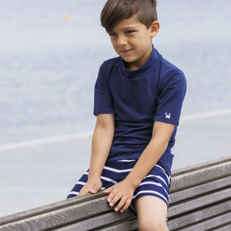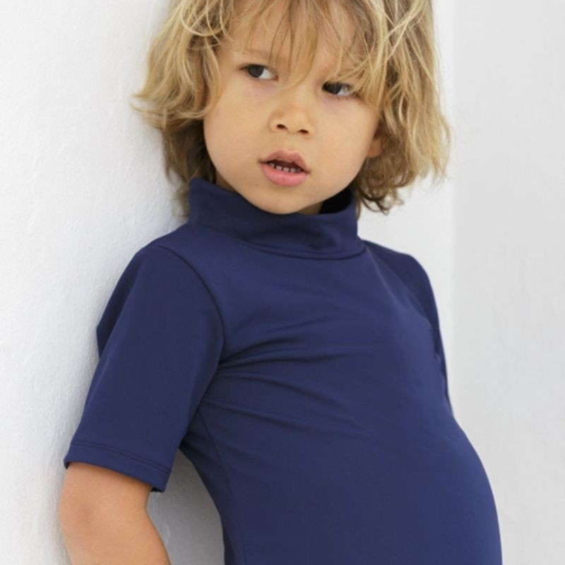 Schönes 'Blau' UV-Shirt. Dieses qualitativ hochwertige UV Shirt von Petit Crabe hat einen 'Turtle neck'.